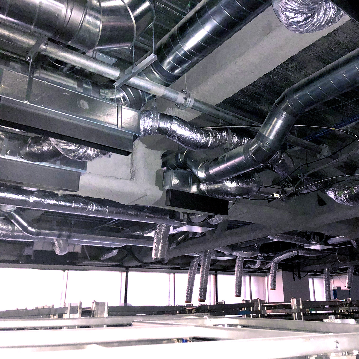 エアコンや業務用空調設備の新設・更新、ダクト工事、換気設備の設置、熱源設備の最適化などを行い、省エネ性能と快適性の向上を実現します。